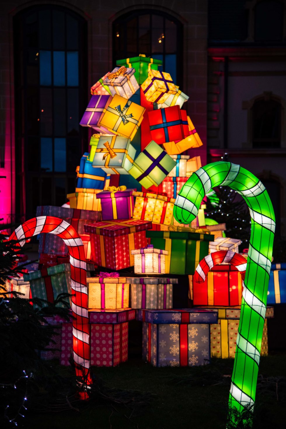 Le « Sentier des Lanternes » est un endroit enchanté qui replonge le visiteur en enfance. Trois étapes rythment la balade enchanteresse. Au centre du Jardin, place au temps de l’Avent avec une maison de trois mètres de haut : une véritable mise en bouche aux saveurs de pain d’épices et de petits gâteaux de Noël, avec différentes lanternes en forme de sucres d’orge, bredele et autres sucreries… Un régal ! Puis, vient le temps de la Saint-Nicolas, en présence du Saint Patron des écoles sur son âne et en compagnie du Père Fouettard… ! Enfin, le moulin des Thermes accueille cette année la salle à manger du Père Noël. L’apothéose du parcours ! Ici, le « Sentier des Lanternes » se pare de ses plus beaux atours : on y croise le Père Noël, forcément, mais aussi une avalanche de cadeaux et de jouets, des rennes et des lutins… Sans compter un clin d’œil aux savoir-faire verriers, avec des lanternes en forme de boules de Noël de Meisenthal !