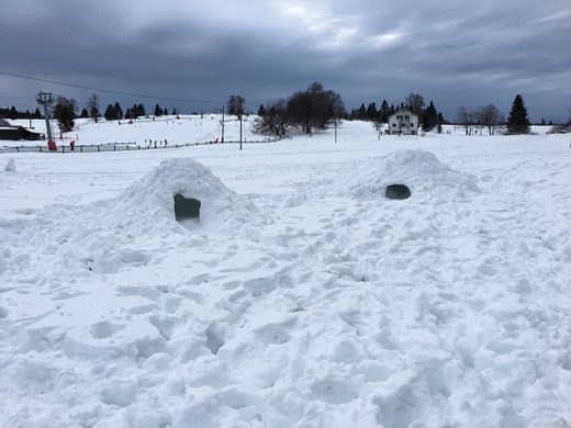Concrètement, l’activité se déroule au Champ-du-Feu. Un moniteur vous enseigne les techniques et les astuces pour rendre votre habitat le plus confortable possible. Quelle que soit la température extérieure, dans le dôme de neige, le mercure reste toujours proche de 0 degré. N’ayez crainte du froid ! Après avoir construit votre igloo, direction à la ferme-auberge en raquettes pour déguster un repas délicieux, chaud et consistant ! Au retour, vous profiterez d’une nuit dans votre palais de glace, équipés de tapis de sol isolants et de sacs de couchages protégeant du froid jusqu’à – 25 degrés (matériel prêté par la Trace Verte). Cette expérience unique en immersion totale garantie ! • Infos et réservations : traceverte.com ou 03 88 38 30 69
