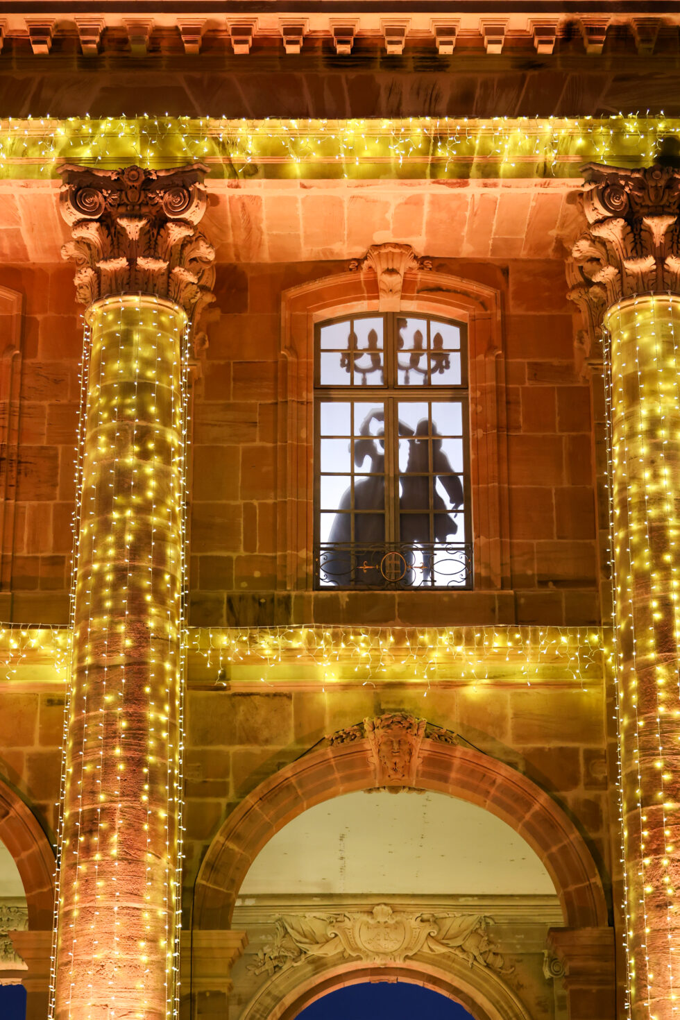 Dès la cour d’honneur, la façade illuminée fait figure d’heureux présage : l’hiver sera lumineux ! Les équipes du château ont enrichi les décors extérieurs, multipliant par deux le nombre de sapins — d’une centaine l’an passé, ils sont passés à 200 — et ajoutant des silhouettes aux fenêtres, des animaux lumineux et une photo-box pour immortaliser la visite. Ici, rien n’est figé : les ombres en mouvement, les reflets sur les vitres et les mille et une petites lumières installées donnent la sensation d’arriver dans un château habité par la magie des préparatifs.