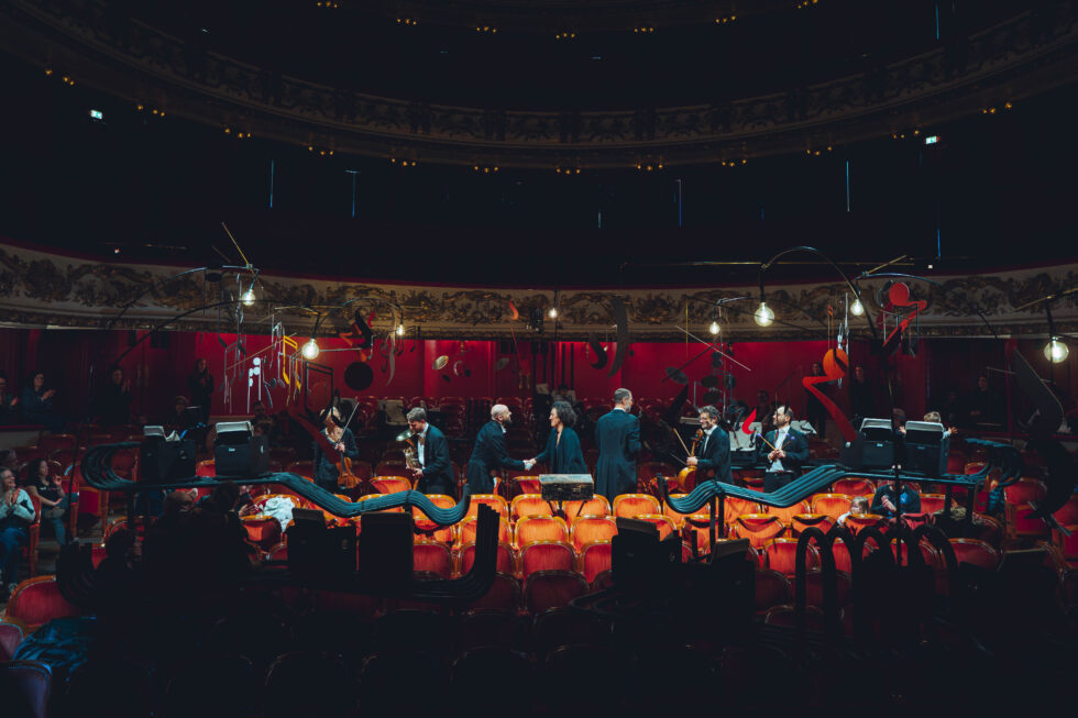 Chaque matin, à 10h et à 11h, c’est une première rencontre douce et poétique avec le chant lyrique qui est proposée aux tout-petits, de 6 mois à 3 ans. Pendant 30 minutes, temps suffisant pour capter l’attention des petits, les portes d’un monde sensoriel s’ouvrent pour ces jeunes pousses, installés dans des berceaux qui pivotent avec au-dessus d’eux, des mobiles composés de notes de musique et les proches à leurs côtés. Qui dit public particulier dit adaptation. A cette occasion, le spectacle ne se joue pas sur scène, mais bien au cœur de la salle. Les musiciens et interprètes tournent autour de ce jeune public et s’adaptent aux réactions.