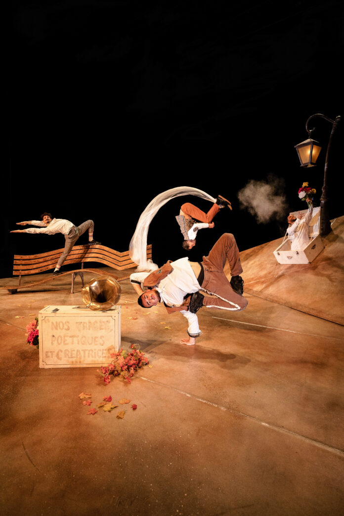 Quatre danseurs, à travers la poésie de leurs corps, plongent dans un monde onirique où viennent s’entrechoquer leurs différents souvenirs de vie. Une succession de saynètes, d’images de la vie, douces, drôles, impertinentes, qui mêleront danse, jeu burlesque, théâtre corporel et manipulation d’objets.