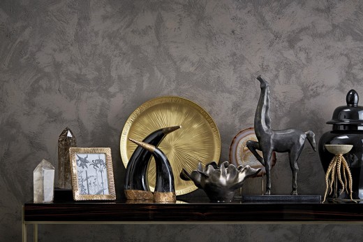 N’oubliez pas non plus certains matériaux dits « pauvres » qui se marient pourtant très bien au doré en créant le contraste comme les carreaux, le bois clair, le ciment, le kraft ou la toile de jute, très prisés dans les demeures scandinaves. Enfin, on pourra tenter le pari de redorer le blason du mobilier chiné, en recouvrant par exemple de dorure les pieds d’un ancien bureau d’écolier en bois brut ou les parois d’une collection de vieux flacons qui viendront orner un buffet. À vos pinceaux !