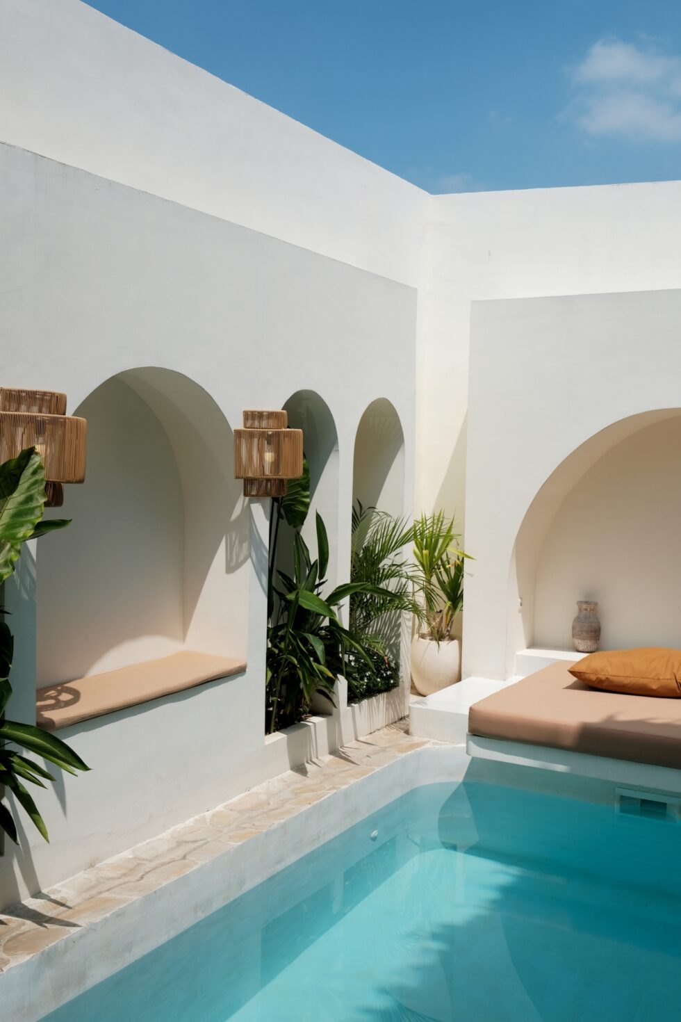 Le mini-format demande également un moindre investissement initial. Les prix démarrent autour de 8 000 € pour une petite piscine creusée et 3 000 € pour un modèle hors sol résistant (type bois ou acier), quand ceux des bassins « classiques » grimpent vite jusqu’à 50 000 € et plus. Une économie qui peut permettre, au cas par cas, de dégager un budget pour des finitions plus travaillées et faire de cet équipement un atout déco tout au long de l’année. Parmi les revêtements en vogue figurent ainsi les carreaux colorés ou graphiques (rayures et damiers), dont l’aspect maximaliste fait son effet, ou à l’inverse les rendus très minéraux qui rapprochent le bassin d’un point d’eau naturel.