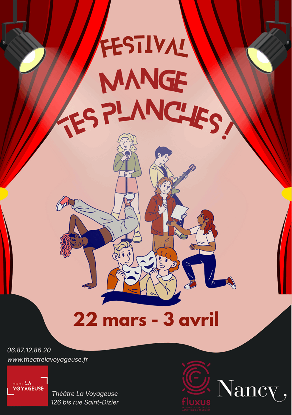Du 22 mars au 3 avril, La Voyageuse s’ouvre aux compagnies amatrices le temps d’un festival qui leur est dédié. Des spectacles payants (entrée 4€, pass 3 places 10€, pass festival 30€) tous les soirs et le week-end, des scènes ouvertes, des répétitions en libre accès… « Mange tes planches » s’annonce épique.