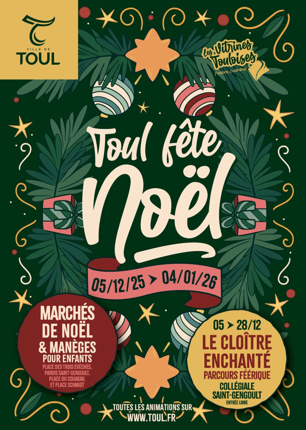 Du 5 décembre 2025 au 4 janvier 2026, la ville de Toul invite vous invite à partager un mois d’émotions, de découvertes et de convivialité, avec un programme riche qui fera briller les yeux des petits comme des grands : défilé de Saint-Nicolas entre tradition et magie, dimanche 7 décembre à 17h (2ème plus important de Meurthe-et-Moselle), marchés gourmands, artisanat, village de Noël, spectacles et illuminations. Un mois de magie, de saveurs et de lumière au cœur de la cité !