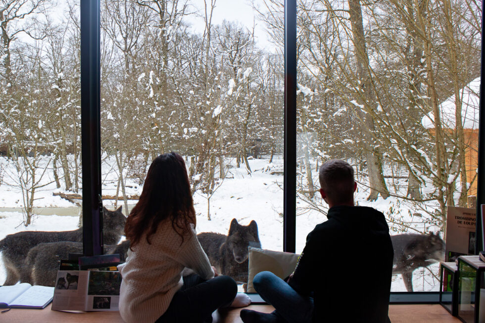 Pour prolonger l’expérience, pourquoi ne pas passer la nuit dans l’un des lodges du domaine ? Ces hébergements insolites plongent les visiteurs au plus près des animaux, qui s’invitent aux abords des baies vitrées. Chaque rencontre offre un moment suspendu entre frisson et sérénité. Une véritable parenthèse hors du temps, dans un décor hivernal d’une beauté rare.