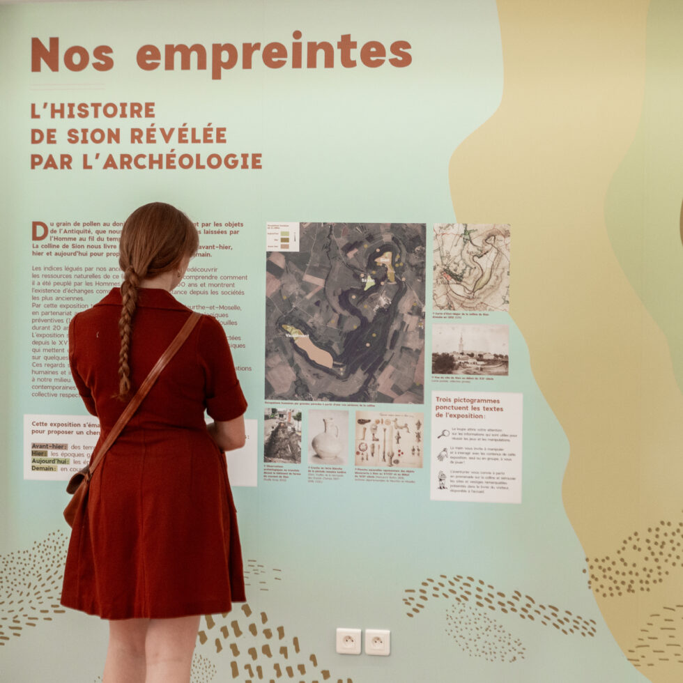 Du grain de pollen au donjon médiéval en passant par les objets de l’Antiquité, que nous racontent les empreintes laissées par l’Homme au fil du temps ?  Cette exposition originale propose une ambitieuse scénographie, faisant écho aux nombreux travaux et aménagements successifs, réalisés ces dernières années sur le site de Sion. Pour compléter la visite, vous pourrez emprunter plusieurs itinéraires de promenade sur la colline (de Sion à Vaudémont)