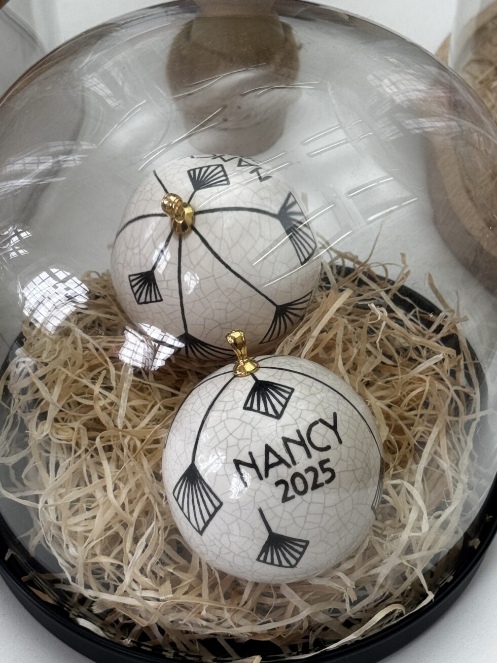 Autre création unique, la boule de Noël de la Manufacture Saint-Jean l’Aigle de Longwy sur le thème de l’Art déco en lien avec l’évènement Métro’Folies, affiché à 49 euros.