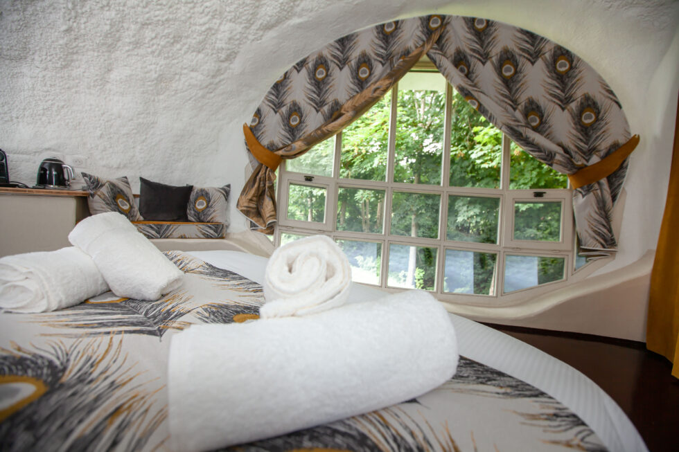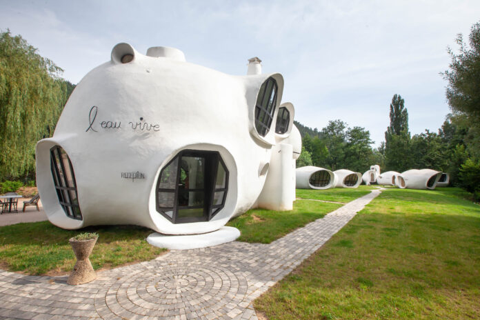 Les amateurs d’architectures et aventuriers de nuits insolites vont être comblés. Le Motel de L’Eau Vive, ce sont des œuvres que l’on doit au couple d’architectes Pascal Häusermann et Claude Costy.  Ces maisons bulles sont nées avec la volonté de rechercher l’harmonie entre l’habitat et le monde naturel de 6.000 m2 qui l’entoure. Constituées d’un seul matériau, avec une emprise au sol restreinte, des fondations légères et un grand volume intérieur, les créations joyeuses de ce duo ont libéré les formes et attirés l’œil.